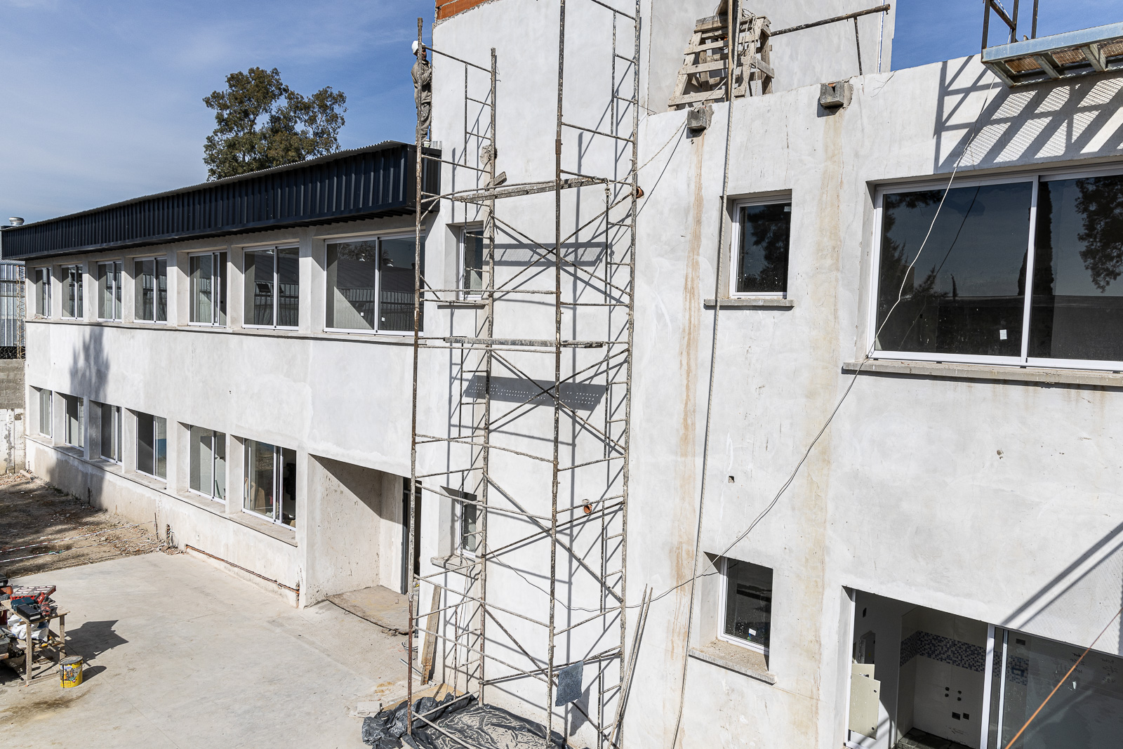 En el edificio además, se construye un Salón de Usos Múltiples (SUM), patio de uso exclusivo y otras dependencias que garantizarán mejores condiciones para la enseñanza y el aprendizaje. Actualmente, los trabajos avanzan con la colocación de cielorrasos, tareas de pintura, instalación de equipos de climatización, revestimientos y acondicionamiento del patio.