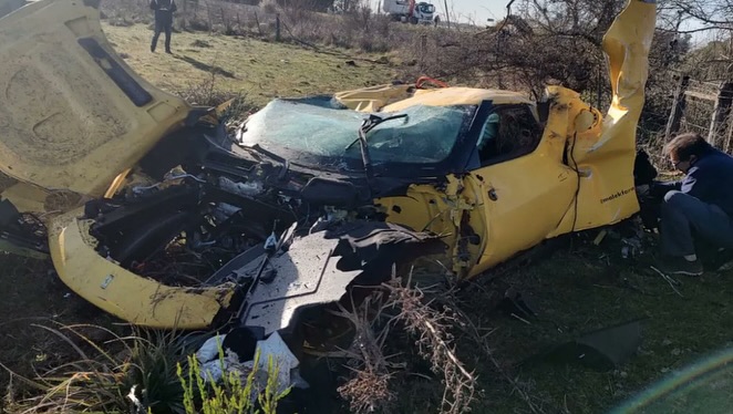 Según los testimonios recabados en el lugar, el vehículo despistó por causas que aún se investigan, quedando dentro de un campo cercano. La Ferrari terminó a unos 40 metros de la cinta asfáltica. El personal que intervino precisó que el conductor no sufrió lesiones y se retiró por sus propios medios.