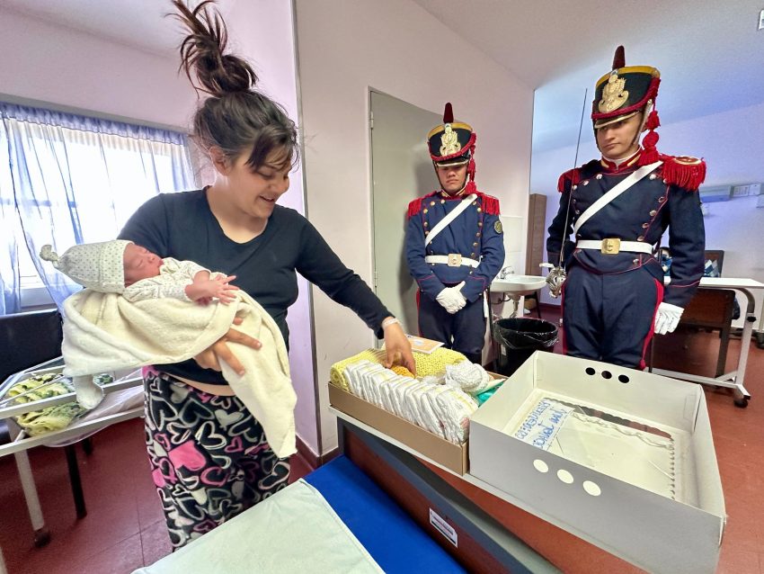 La entrega estuvo a cargo de dos integrantes del Regimiento de Granaderos a Caballo «General San Martín», Daniel Suárez y Brian Grudzinski. En primer lugar, visitaron la sala de maternidad del Hospital Dr. Arturo Oñativia, donde se encontraba Débora Rodríguez, vecina de Claypole, quien dio a luz a Juan Ignacio el 24 de agosto a las 18:24. El bebé nació por parto natural, pesó 3 kilos y midió 47 centímetros.