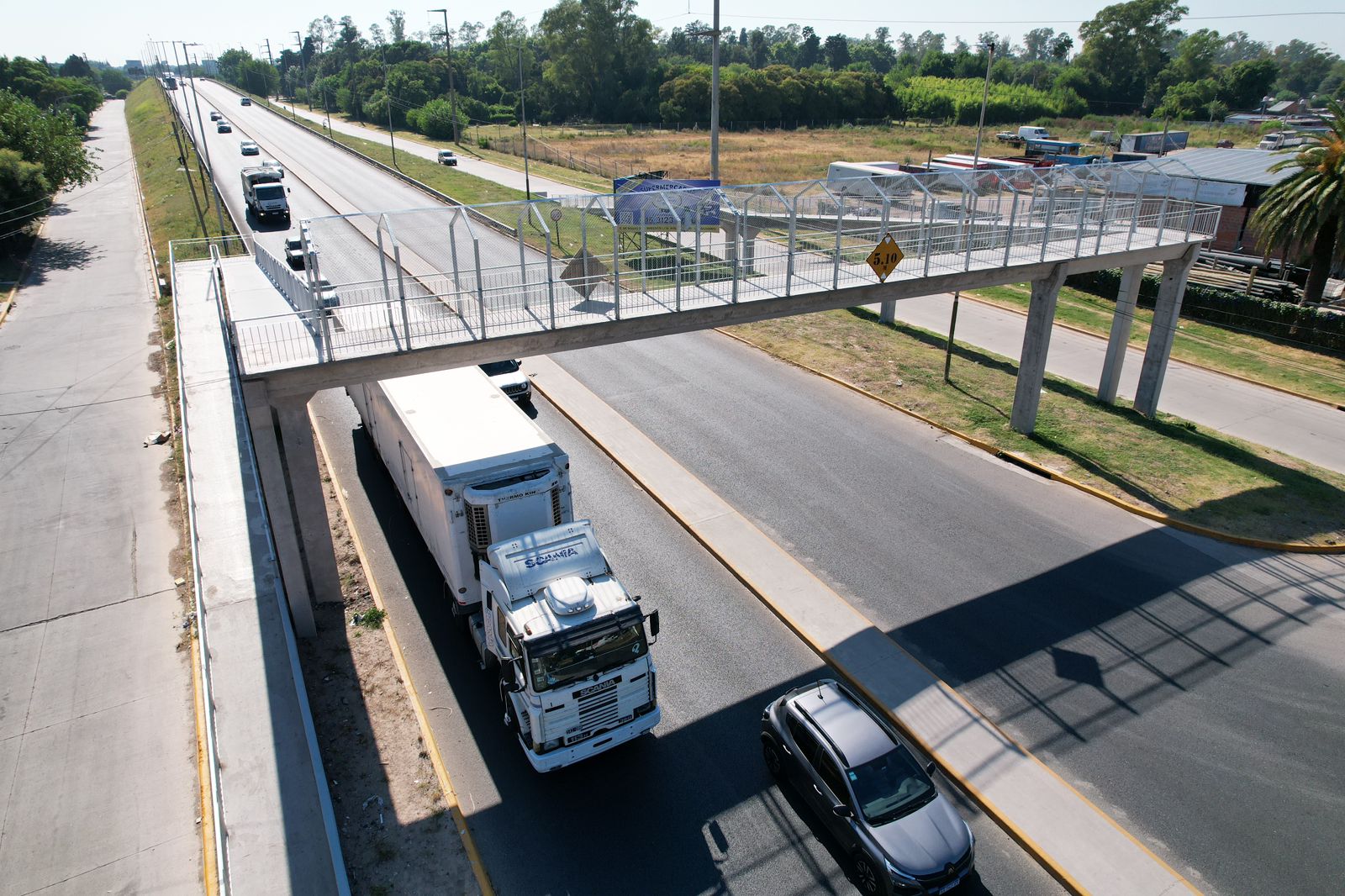La estructura, construida en hormigón, cuenta con una altura de 5,30 metros -superior a la del Viaducto Papa Francisco- lo que permite una circulación segura de todo tipo de vehículos de gran porte. Además dispone de rampas de acceso, descansos intermedios, iluminación y barandas de seguridad, garantizando accesibilidad y condiciones adecuadas para su uso diario.