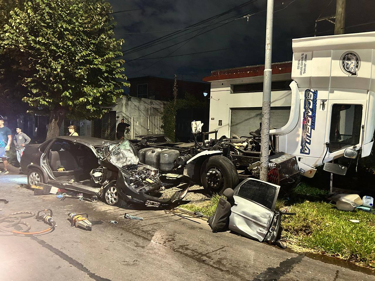 Un grave accidente de tránsito ocurrió en las últimas horas en la intersección de las avenidas San Martín y Espora, en la localidad de Adrogué. El siniestro se produjo cuando un automóvil particular, en el que viajaban tres personas, colisionó de manera violenta contra un camión de gran porte. Debido a la magnitud del impacto, el vehículo menor resultó con daños severos en su estructura, generando una situación de extrema urgencia en uno de los cruces más neurálgicos del partido de Almirante Brown.