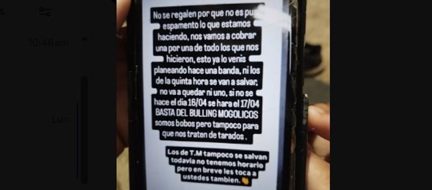 «Nuestro objetivo es llevar tranquilidad a las familias y asegurar que la escuela siga siendo un entorno protegido. Agradecemos su acompañamiento y comprension», dijeron desde la escuela. «Comunicaron eso, pero cuando les pregunté si hicieron la denuncia correspondiente me contestaron con evasivas siendo que es grave la situación. Como madre siento que subestimaron la situación. Yo no lo mandé a mi hijo a la escuela», contó la madre de un alumno a este medio. «No sabemos si denunciaron a las autoridades correspondiente o no. No nos dicen nada».
